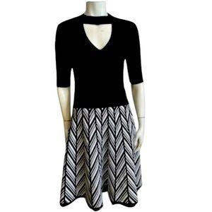 Candie’s Fit & Flare Sweater A Line Dress Size XL Black and White Chevron Fall