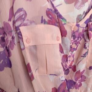 Candie's Floral Pink Flutter Butterfly Sleeve Blouse Top Cinched Waist Sz M