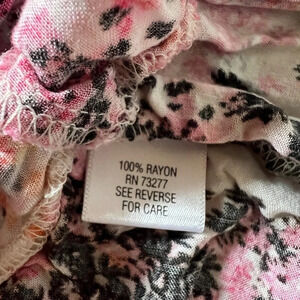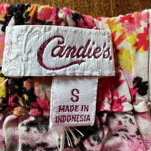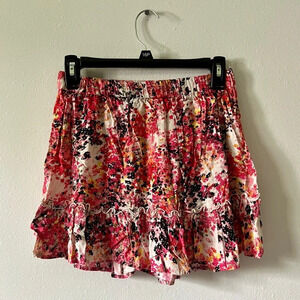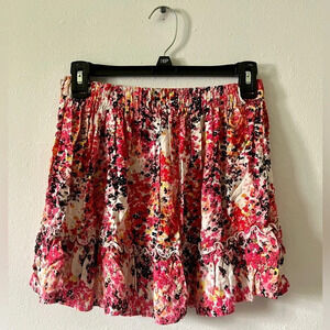 Candies pink ditsy floral mini skirt with ruffle hem, elastic waistband, above knee length.