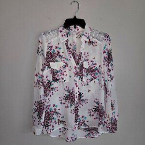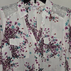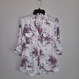 Candie's Floral and Lace Button Up Blouse in a Misses size Small