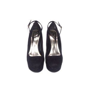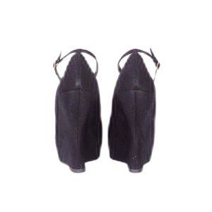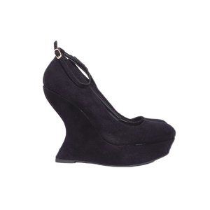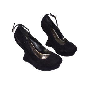 Candie's Ginger Black Faux Suede Platform Almond Toe Gravity Wedge Heels NIB