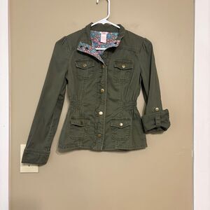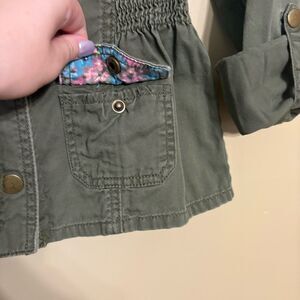 Candie's Girls Button-Up Army Green Utility Jacket Floral and Bow Accents Medium