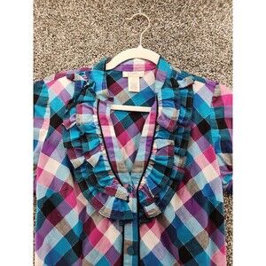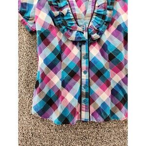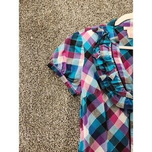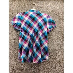 Candies Girls Large Plaid Short Sleeve Button Down Blouse.