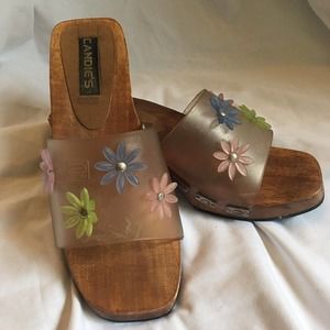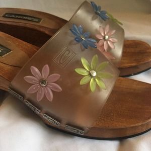 Candies Jelly Clog Clear Wooden Slide Sandal VTG Floral Chunky Womens Size 6.