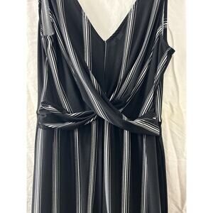 Elevate your wardrobe with this stunning Candie's jumper jumpsuit romper in size M. The black and white striped design, wide-leg palazzo style, and V-neckline make it a perfect choice for any occasion. The pullover closure and sleeveless straps provide comfort all day long, while the classic fit and regular size type ensure a flattering silhouette.
