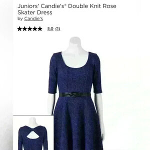 Candie's Juniors Double Knit Rose black and blue Skater Dress size Small