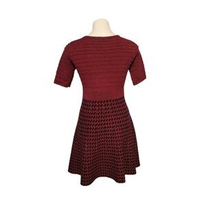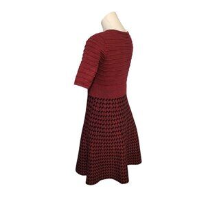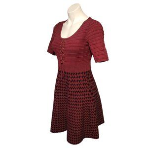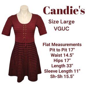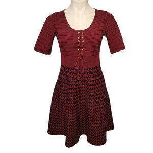 Candie's Juniors Sweater Dress Burgundy Knit Fit Flare Retro Large Houndstooth