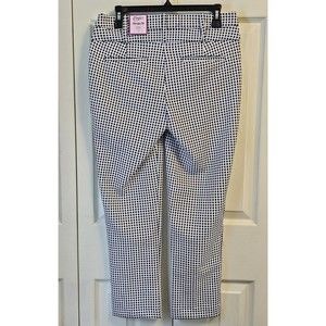 Candies Marilyn Fit Midrise Stretch Black White Print Ankle Pants. These pants are perfect for any occasion, whether it's a travel adventure, a party, or a casual day at work. The check pattern and hook & eye accents add a touch of sophistication, while the faux pockets provide functionality.