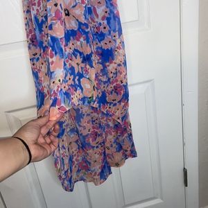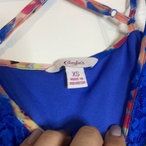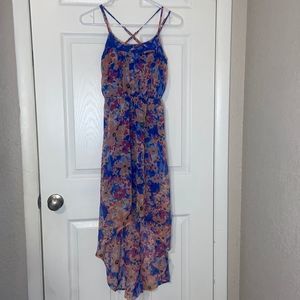 Beautiful high low dress! Lace detail on the front and back. Double criss cross back 100% polyester shell and lining. 98% nylon and 2% spandex lace.