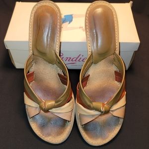 Multi color strap sandals- taupe, tan, rust, olive. The two Candies listings were my daily go-to because they complement many outfits. Some heel scuffs but very good condition.