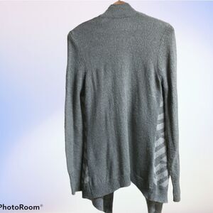 This oversized comfy knit cardigan from Candie's is perfect for the freezing office. It's lighter in the body with no fasteners so you're not constricted. The pattern is an interesting combination of stripe, herringbone, and chevron, in neutral gray tones.