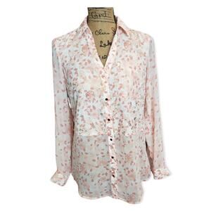 Candie's Pink Pastel & Rose Gold Button Up Long Sleeved Dressy Collared Blouse