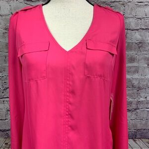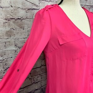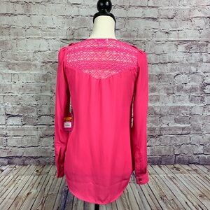 Candies Pink Sheer Lace Roll Tab Sleeve Blouse