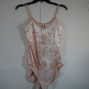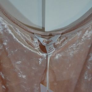 Baby pink crushed velvet bodysuit from Candie's. Keyhole detail and two snap closure. Size M. Worn a few times.