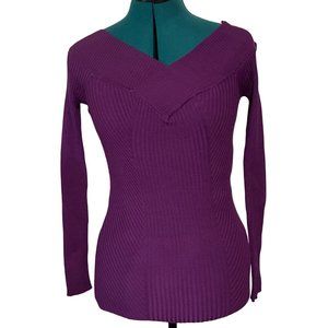 Candie's Purple Portrait Neckline Stretch Sweater Rayon Blend Junior Size M NWT