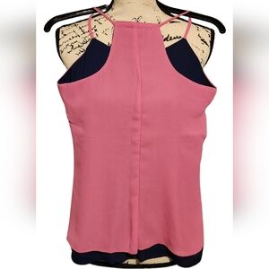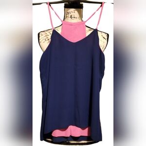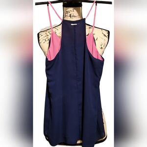 Like new - Spaghetti Strap, racerback reversible blouse. Navy blue and light pink. High-low style.