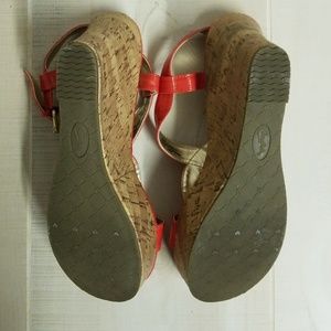 Candie's Rocking Tangerine wedges in a orange/red coral color.