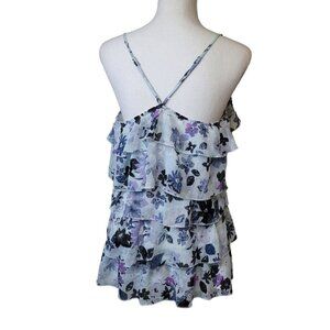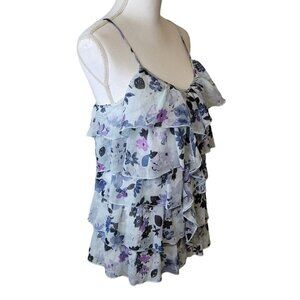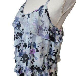 Candies Ruffle Dress Floral Chiffon Blue Purple Womens Large Spaghetti Strap