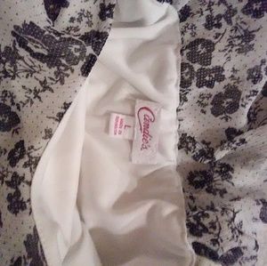 Candie's white and black ruffled tank blouse. Size L. Dainty floral print. Flirty ad fun for summer.