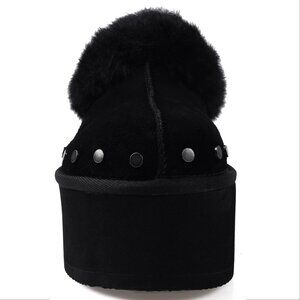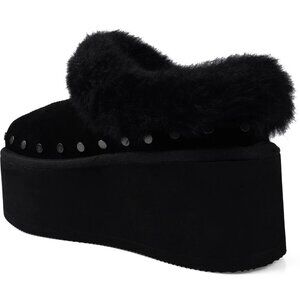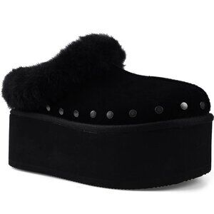 Candie's Sabi Faux Fur Platform Mule Clogs Size 7 Black Suede Studs NEW