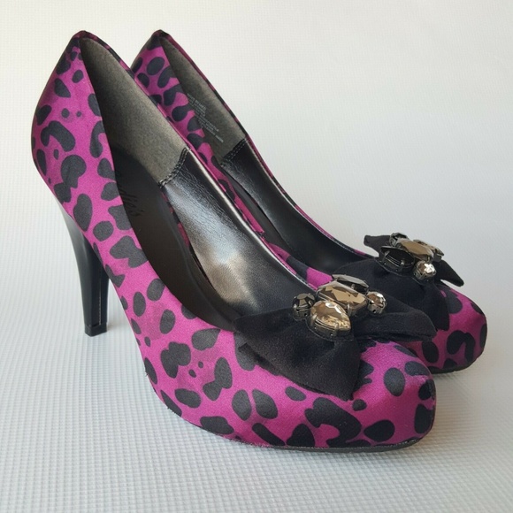 Candie’s Women’s Satin Purple Leopard Animal Print Pumps Heels Size 8.5