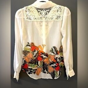 EUC - Lovely Monarch Butterfly Colors - Tie front or Leave Down, Collar with Roll up Sleeves.