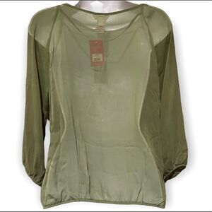 Candies Sheer Lace Blouse Top Gathered Long Sleeve
