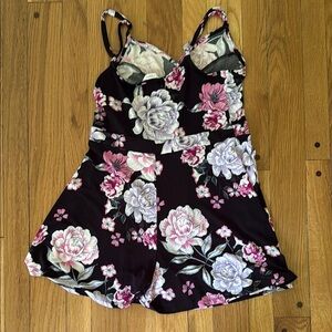 Candie's Shorts Romper Black Pink Floral Wrap Front Size M Stretchy