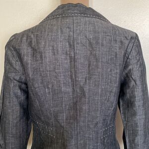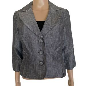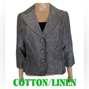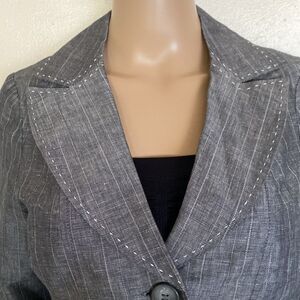 Candie’s Silver Grey White Stripe Long Sleeve Linen Cotton Blend Blazer Jacket M