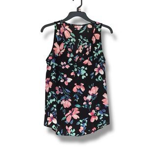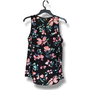 Candie’s Sleeveless Black Floral Lightweight Blouse Small Cottagecore