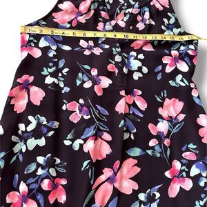 The Candies Sleeveless Black Floral Lightweight Blouse in size Small is a perfect piece for those embracing a cottagecore style. The V-neck and pullover closure make it easy to wear for casual occasions or travel. Made from lightweight polyester, this blouse features a beautiful floral pattern in black, adding a touch of bohemian flair to any outfit. With its regular fit and basic style, this top is a versatile addition to any woman's wardrobe, ideal for those who appreciate colorful and flowery designs.