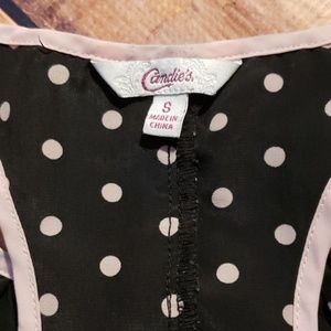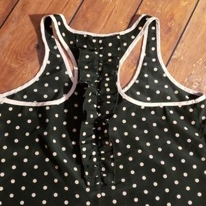 Black and pink Candie's Racerback tank that is light and airy. Ruffles detail on the back.