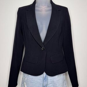 Candie’s Stretch Blazer Career Jacket Coat, Size Small. In excellent condition made from a polyester blend with spandex and rayon. It is a single-breasted blazer with a notch lapel.