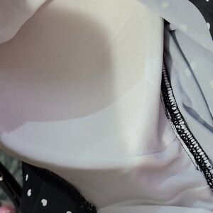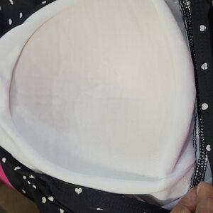 Black with white hearts with pink bows at shoulders