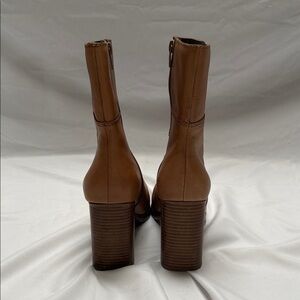 Y2K Candies Tan leather stacked heeled small platform tapered rounded square toe boots. Size 9. See photos for condition. 4” heel with 1/2” platform.