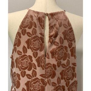 Candies True Mauve Pleated Halter Swing Dress Floral Print Keyhole Lined Size XL