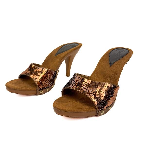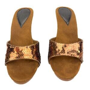 Candie's Vintage Faux Leather Sequin Clog Open Toe Stilleto Sandals 7.5 Boho y2k