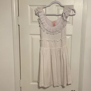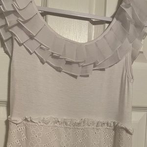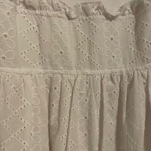 Cute, white eyelet dress with fun lace neckline border. Comfortable and light. Perfect for a summer vacation. Women's Size 5.