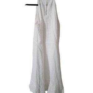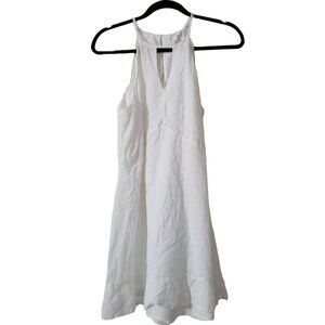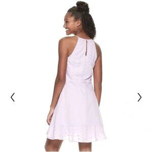eyelet mini dress, keyhole neck dress, summer casual dress, Candie's dress, women's white dress, ruffle hem dress, medium size dress, casual summer wear, elegant mini dress, white sleeveless dress, lightweight cotton dress, sleeveless ruffle dress, semi-formal white dress