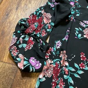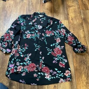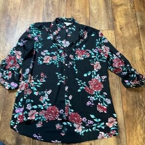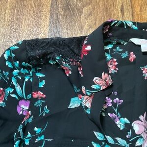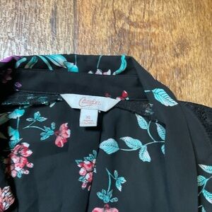 Candies Women's Floral Button Up Blouse Lace Shoulder Tie Back Sleeve XL, good used condition