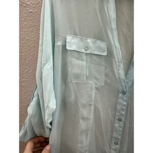 Candies Womens Juniors Blouse Size Small Blue Sheer Button Up Collared