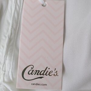Candie's Women's SZ L Tie-Front Ruffle Strap White Eyelet Babydoll Top New w Tag