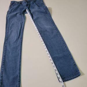 These skinny leg jeans have a medium wash to them and they're a lighter weight denim- nice for summer! The waistband does have some loose stitches, shown in last photo- but are in very nice condition.