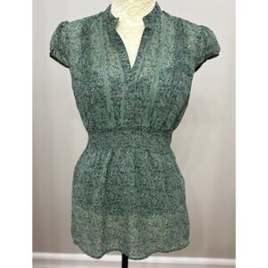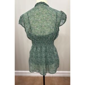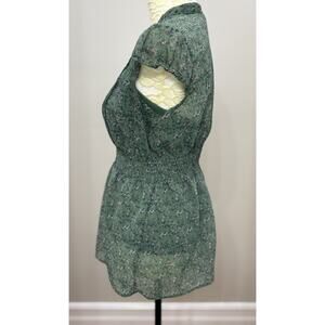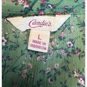 Candie's Y2K Babydoll Top Women L Coquette Green Floral Sheer Fairy Cottagecore