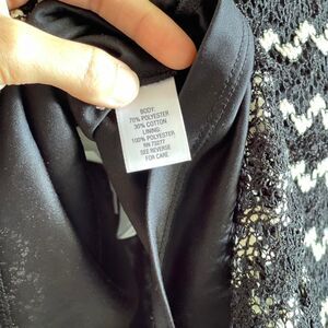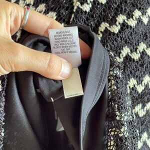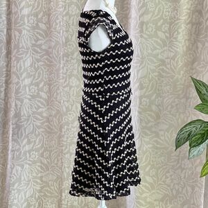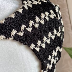Description: vintage y2k ivory and black geometric pattern crochet mini dress with cap sleeves by Candies in US women’s size S.