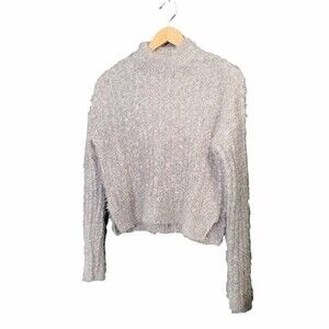 Candies Y2K Cropped Eyelash Sweater Light Gray Women’s Size Small Fluffy Cozy
