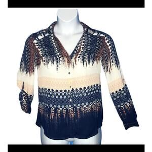 Candie’s Y2K Hi-Low Button-Up Blouse S Cut Out Floral Collar Retro Festival Top