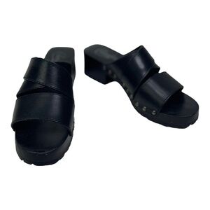 Candies Y2K Women’s Black Leather Chunky Heel Sandals