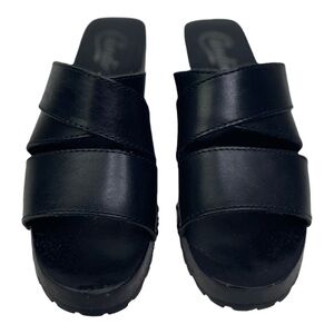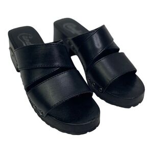 Candie’s Y2K Women’s Black Leather Chunky Heel Sandals