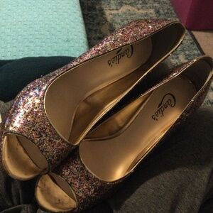 Candies brand multi color glitter open toe heel. Excellent condition, size 9